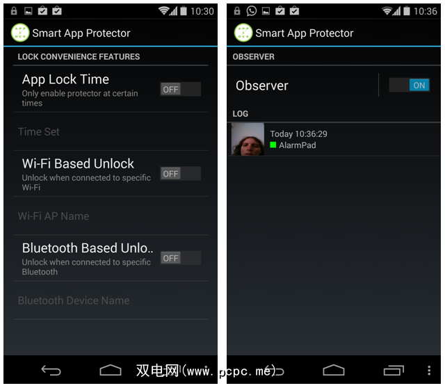 例如,在这里,您也可以设置“观察者"模式来捕捉密码输入错误者的照片。您还可以将应用设置为在连接到某些Wi-Fi网络或连接到某些蓝牙设备时在特定时间自动解锁。您甚至可以设置远程密码来通过SMS锁定和解锁手机。