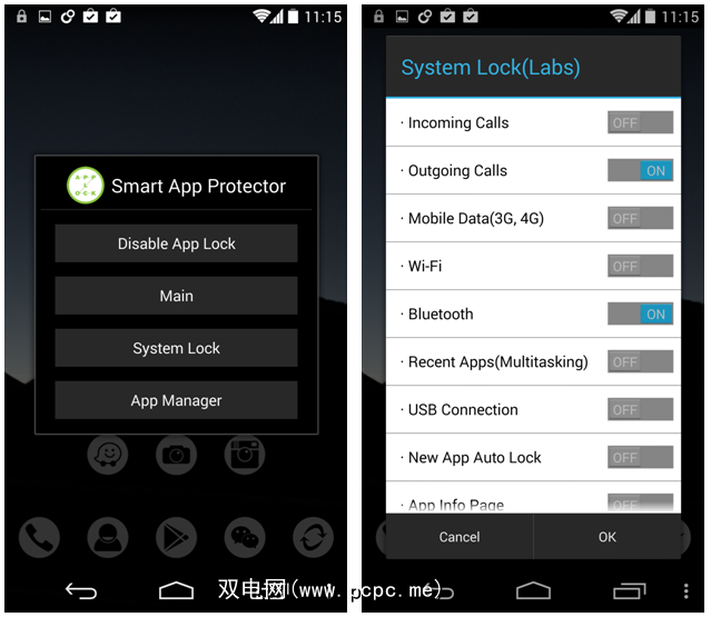 Smart App Protector不仅可以锁定应用程序,还可以做更多的事情。该应用程序的系统锁定功能可让您锁定某些电话功能,例如通话,连接性等。锁定此功能后,每次使用该密码时都需要输入密码。