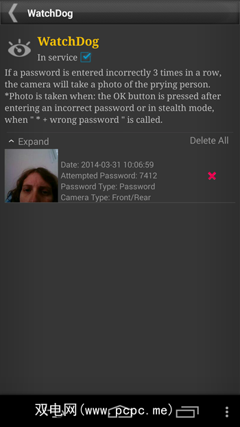 就像Gallery Locker一样,Perfect App Lock也具有看门狗功能,可以在入侵者试图捕获入侵者照片时对其进行捕捉闯入您的应用。您还可以通过向您的设备发送短信来远程启动Perfect App Lock服务。