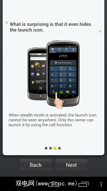 另一种选择是激活应用程序的“隐形模式",该模式将应用程序图标完全隐藏在应用程序抽屉中。这样,没人会知道它已安装,也没人会尝试闯入。如果要在隐身模式下启动该应用程序,则必须在拨号器应用程序中拨打密码。