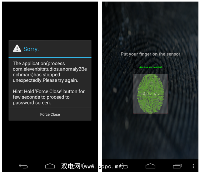 使用Perfect App Lock,您的每个应用程序都可以选择5个选项。如果您只是使用锁定按钮锁定应用程序,则需要输入密码(PIN码,图案,文本或手势)才能访问它。指纹图标将启动伪造的指纹扫描仪,以吓倒入侵者。长按说明,然后“扫描"指纹后,将出现密码提示。如果您只是尝试扫描,就不会走很远。警告图标会激活伪造的错误消息(提示仅在首次尝试时出现)。