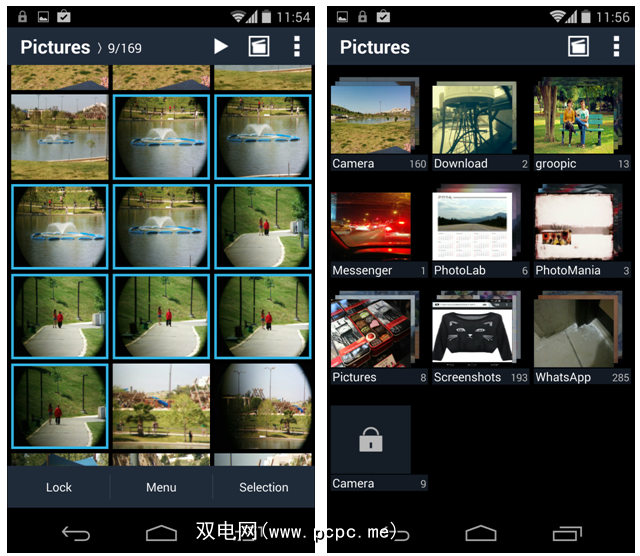 主要功能很简单:从图库中选择照片和视频,然后点击“锁定"将其隐藏在受保护的文件夹中。