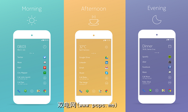 该应用程序还会猜测您在一天中的哪个时间想要的应用程序,并为您显示在前面和中间。顶部内置了一个小部件,用于显示相关信息,例如时间,天气或您的下一个日历约会。