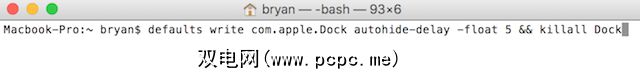 defaults write com.apple.Dock autohide-delay -float 5 && killall Dock
