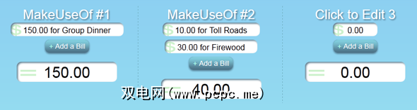 “ 添加帐单" 按钮将会添加更多输入字段,您可以在其中输入更多已付费的商品。文本字段很聪明,因为您可以从货币值(例如$ 40.00)开始,其余部分将被忽略,因此您可以用它来描述该账单的用途。