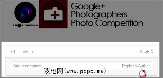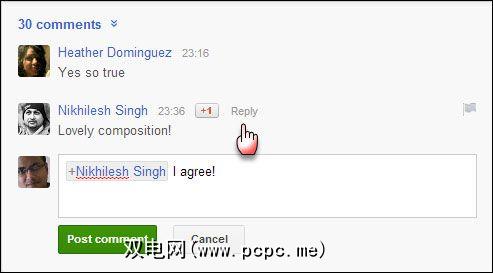 您可以在评论框的右侧看到回复作者链接。只需单击一下,您就可以轻松直接地在对话中回复任何人。当然,您可以通过手动方式在评论中添加+和消息作者的姓名,例如,您可以使用“ + name"(例如“ + JohnSmith")回复朋友的消息。它与Facebook非常相似。只需单击一下,Google +的“ Replys and More"功能便会变得更加轻松,并节省您几秒钟的时间。如果您是Google+的重度用户,那么当您尝试回复朋友或联系人时,这些时间确实会加起来。