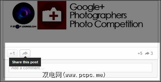 这是安装扩展程序之前默认注释框的外观。您只能与您的Google+圈子和朋友分享一条帖子。