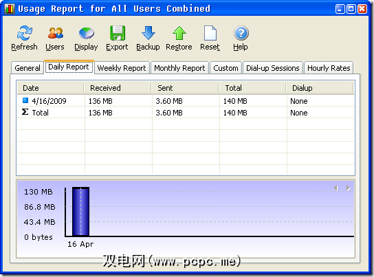 您可以获取每日的详细信息,每周或每月统计信息。您可以设置自己的自定义报告以及设置小时费率。对于仍在使用拨号的用户-它也有一些统计信息。