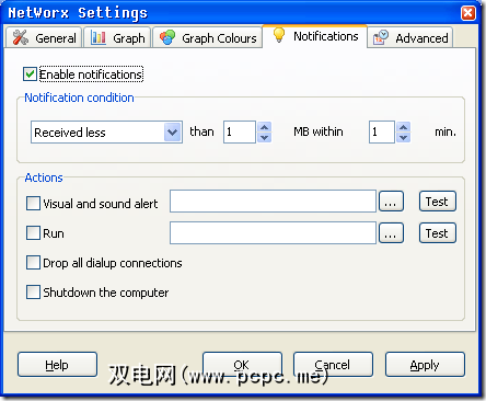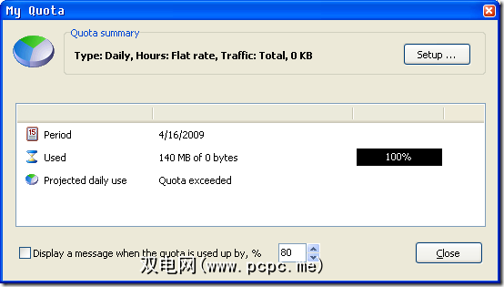 使用此选项卡,您可以让Networx提醒您当您使用了一定数量的数据时。