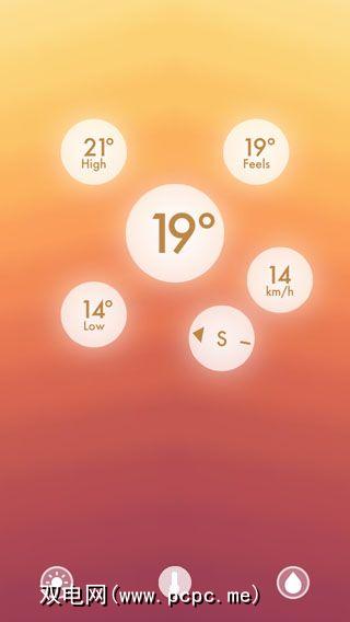 在每个屏幕上,只需轻按一下中心图标即可显示其他内容信息包括一天中的最高和最低温度,日出和日落时间以及漂亮的风向指示器,该指示器利用iPhone的内置数字罗盘指示微风的方向。对于大多数人来说,这是足够的信息,尽管您只能看到当前天气状况的详细程度。