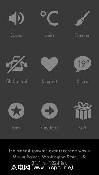 除了提供简短的介绍之外,iPhone天气应用程序根本无法牵手。详细说明手势以及数字的含义,因此您几乎无法解释要做什么,这是因为Haze有许多主题可以解锁。这些主题只能通过浏览该应用程序及其各种功能来解锁,其中大多数功能都可以通过主菜单(向下滑动即可访问)解锁。