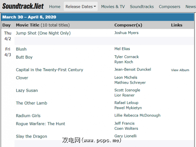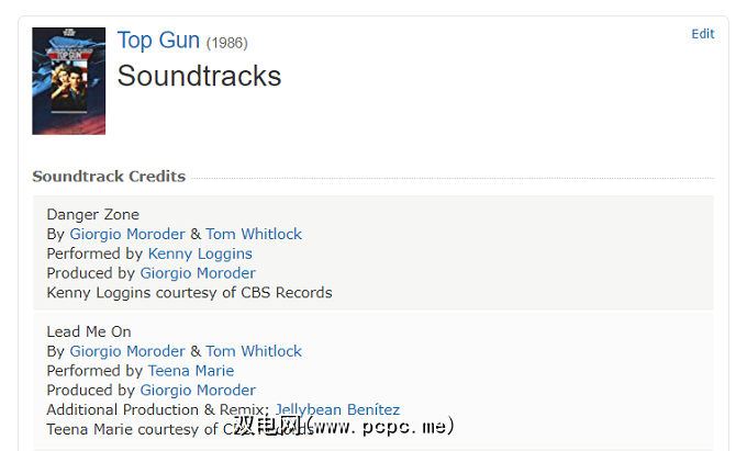 当然,IMDb主要是电影和电视爱好者的最佳资源之一。它具有几乎可以想到的每个发行版的情节线,演员列表,评论和琐事。但是不要忘记;它还列出了音乐-包括乐队,曲目名称,作曲家等等。