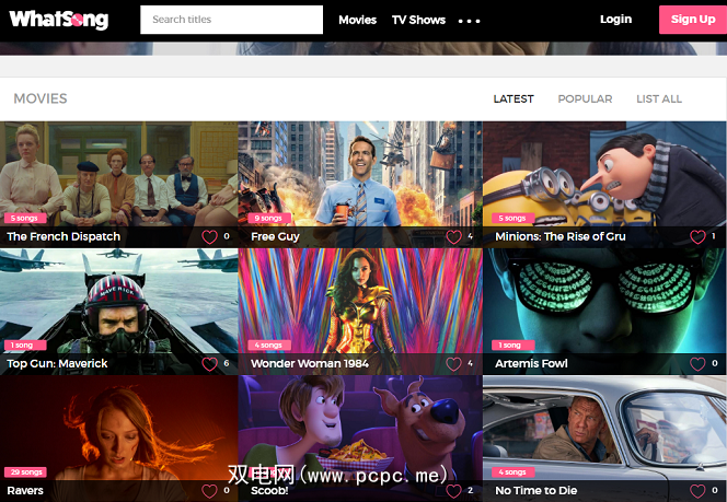 另一个值得一看的电视音乐发现者是WhatSong。该网站分为电影和电视节目。