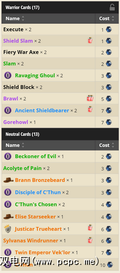您将需要一个HearthPwn帐户(通过Curse,因此您可能已经拥有一个)。现在,当查看HearthPwn上的纸牌时,它会显示制作纸牌需要多少手工灰尘以及丢失的确切卡片(由卡片名称旁边的红色小灰尘罐指示) 。