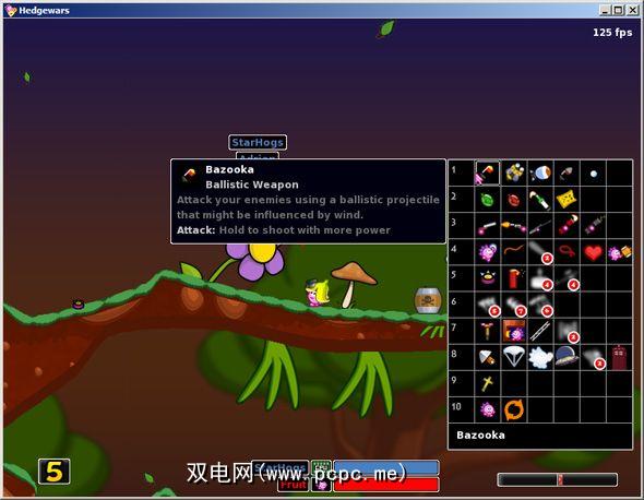 Hedgewars使我印象深刻的一件事是可用武器的数量之多。开发人员并没有以传统的火箭筒,手榴弹和抓钩结束。他们增加了很多好东西:莫洛托夫鸡尾酒,挖掘工具,空袭,归巢炸弹,传送等等!