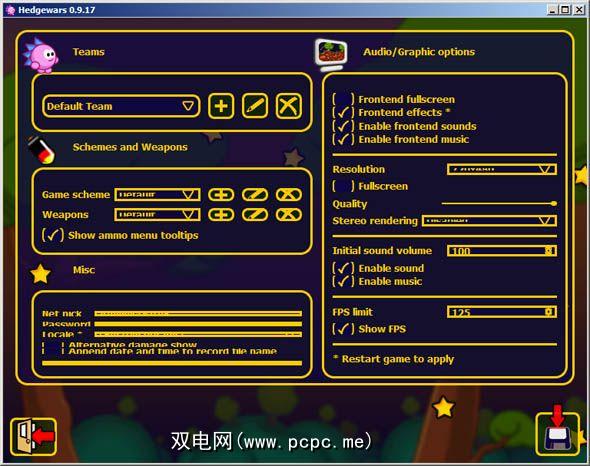 尽管游戏非常有趣,并且对所有类型的人来说都是爆炸性的玩家们,界面非常缺乏。可以肯定的是,有很多个自定义选项可供您使用,以便您可以根据自己的喜好定制游戏体验-但从美学上讲,Hedgewars黄色界面简直很难看。