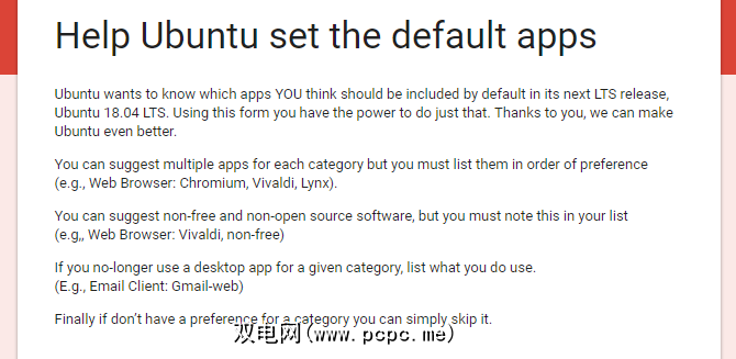 您可以轻松访问Ubuntu默认应用调查页面提出自己的建议。没人需要知道或关心您是谁。只是您想帮助Ubuntu做到最好。