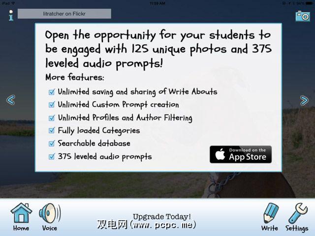 自定义照片和提示也可以添加到应用中,允许教育工作者使用第二天的课堂写作提示来使用课堂实地考察期间拍摄的照片屁股或做作业。学生可以针对其他类型的提示来撰写回应,例如诗歌,信件,短篇小说,清单和日记。而且没有理由为什么无法上传科学实验的自定义图片并使用该应用做出响应。