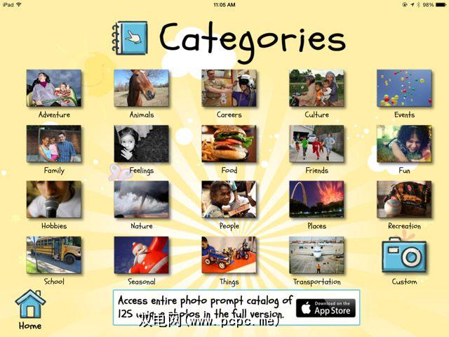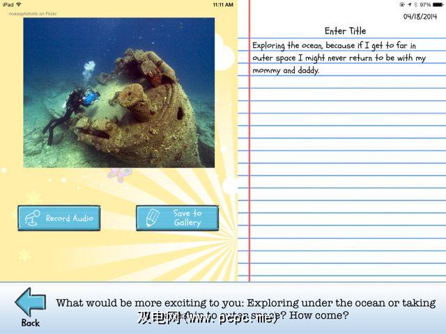 该应用程序的用户可以从(完整版)数百张图像中进行选择,和自定义照片,包括各种各样的类别(包括冒险,动物,爱好,地方,学校和娱乐场所),并在作家的笔记本上对图像进行回应。