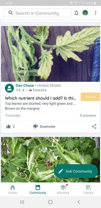 前往底部菜单栏上的社区项目,询问或回答与园艺相关的任何问题问题。每当您陷入园艺行业困境时,通常可以在Plantix社区中找到专家来提供帮助。