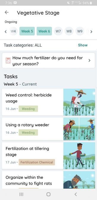 在Plantix中输入位置和农作物类型后,该应用程序将显示您的预报区域。有关最佳的农作物保护方法的建议,请访问建议页面。创建建议后,您可以选择需要帮助的工厂。 Plantix将向您显示有关植被的基本信息以及肥料计算器。