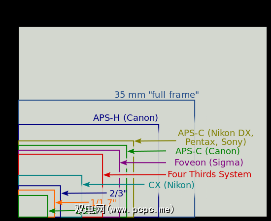 下面是裁剪传感器和全帧传感器之间的很好比较。