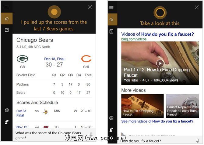 您可能想要错过的体育比赛的分数,最新的新闻标题或人物,地点或事物的详细信息。 Cortana会为您提供所需的信息,或者打开Microsoft Edge并显示为您显示的搜索结果。