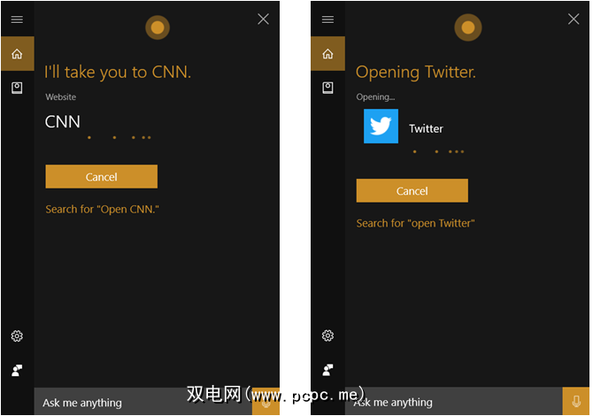Cortana可以在Microsoft Edge,已安装的应用程序或计算机上的设置中快速打开网站。