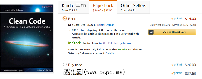 要租借教科书,请将其添加到购物车中,但选择出租而不是购买新书 。您会看到截止日期,通常在本学期末。教科书退货的运输是免费的。如果您不按时退还,则需要支付15天的扩展费,然后是书籍的购买价。