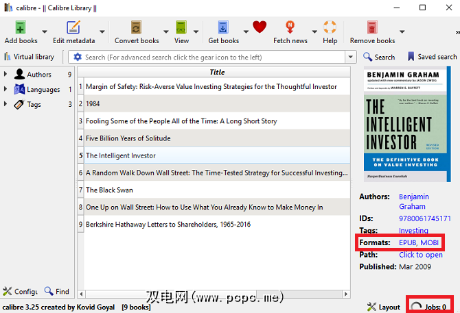 您可以通过点击应用首页右下角的 Jobs 来验证转换是否成功。屏幕。您还可以检查屏幕右侧图书信息面板中是否列出了新格式。