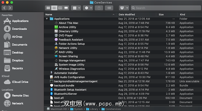 现在,您已经找到了CoreServices文件夹,下面我们来看一些最有用的应用程序住在里面。请注意,其中大多数存储在CoreServices的 Applications 文件夹中。
