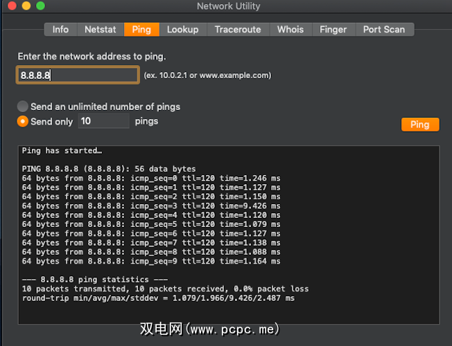 Network Utility需要几个有用的终端命令,并将其放入方便的应用程序中。这是一个非常有用的程序,可用于通过Mac改善您的网络。