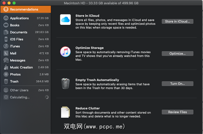此应用程序显示在macOS Sierra中,可让您深入了解Mac上占用的空间。它会按类型细分您的存储空间。它还将提供一些选项来更好地管理该存储,例如自动清空垃圾箱,或者在不使用iTunes的情况下将它们删除。