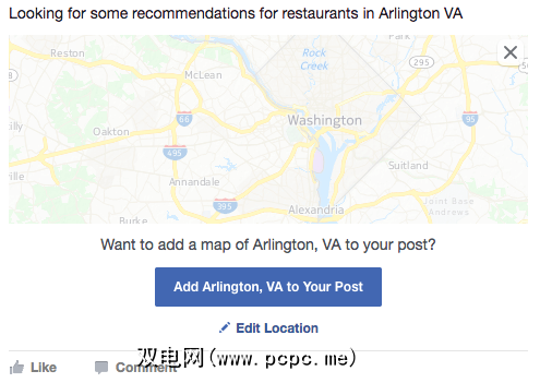 如果您在请求中包括城市名称,则在您发布请求后,Facebook会为您提供添加地图的选项。