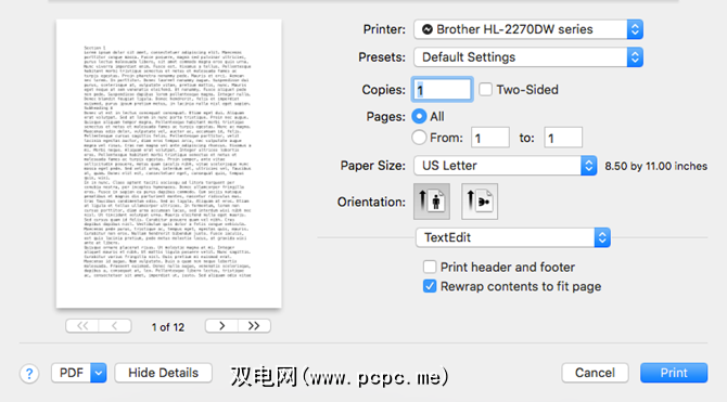 要在Mac上获得其他打印选项,必须在打印对话框上单击显示详细信息。如果您经常使用这些其他打印选项,则可以更改设置以每次显示完全展开的 Print 对话框。