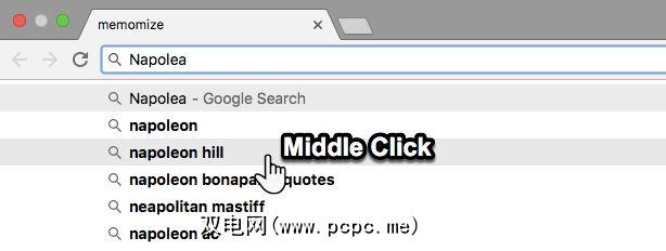 从上面开始,如果您是沉重的web searc,则单击带有中间按钮或滚轮的自动建议条目可以为您节省宝贵的时间她。