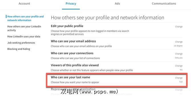 在LinkedIn上,您的1度关联会始终显示您的全名。但是其他人不会。它还会关闭您的公开个人资料,这将阻止您的LinkedIn个人资料出现在任何搜索引擎中。以下步骤来自LinkedIn网络版本。