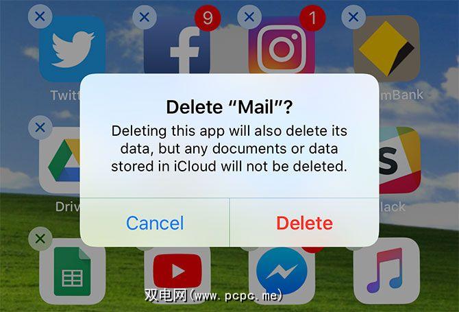 记住要删除库存应用程序