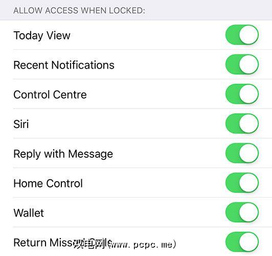 取消选中您未选中的任何项目不要让他人在您的iPhone锁定时访问。请记住,其中许多功能都是您每天可能会使用的便捷功能,例如能够在不解锁设备的情况下查看传入的通知。