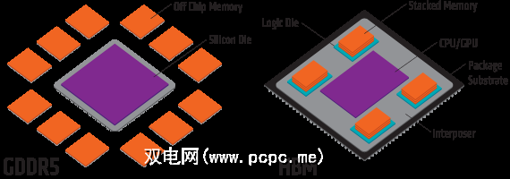长期以来,人们一直在谈论所谓的“内存墙",它将限制未来在处理技术突破方面的创新。据估计,这堵“墙"大约发生在16个CPU内核上。在台式计算机上,较低的延迟比较高带宽的解决方案更可取,而GPU设备目前具有“更多,更优"的带宽解决方案。同步图形随机存取存储器)大部分围绕着宽总线-这是一种通信系统,可在组件之间传输数据。致命的缺陷在于芯片如何通过边缘接触来连接到GPU。为了增加带宽到内存,我们不断增加更多的芯片,每个芯片并排放置。这不是理想的解决方案,因为它会产生蔓延效应,需要更长的导线来维持GPU连接。这样一来,就需要更多的电源来延长额外的电线的长度。