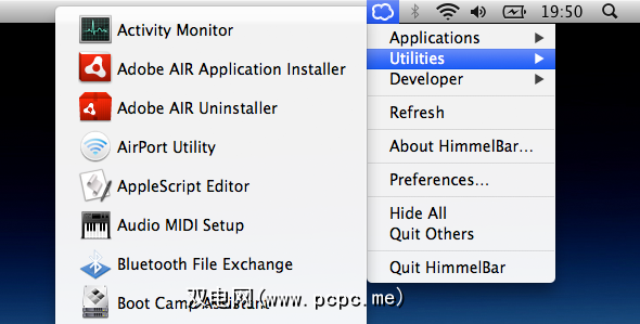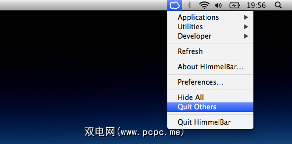 在HimmelBar下拉菜单中,您会注意到另外两个选项。除了使用HimmelBar打开新应用程序之外,您还可以使用它来清理房屋。 全部隐藏会清除所有困扰您计算机的应用程序。相比之下,退出其他人会拿出大手笔并退出当前正在运行的应用程序以外的所有应用程序。