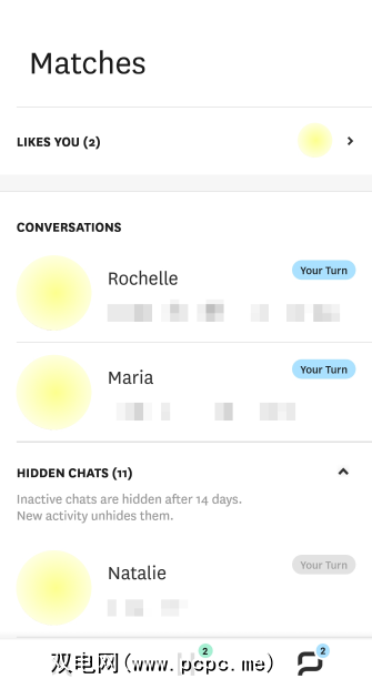 Hinge消除了这一点。它专门告诉您有多少人喜欢您。当您进入他们的个人资料时,顶部会出现一条消息,显示他们喜欢您的情况。然后,您可以根据需要立即与他们聊天。