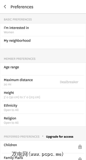 然后,您可以根据年龄范围,距离,身高,种族和宗教信仰来设置比赛偏好。