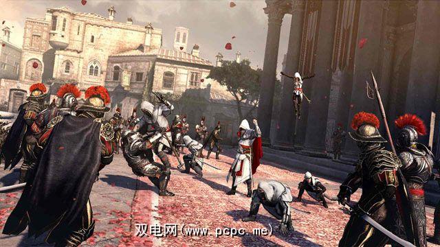< em> Brotherhood 建立并扩展了 II 的长处。而不是两个城市和周围的-基本上是空荡荡的-乡村,只有一个:对罗马的巨大想象,必须从圣殿骑士区逐个收回。甚至增加了更多的边路任务。新刺客可以招募来建立名义上的兄弟会。这些新兵可以自己被派遣执行任务,也可以帮助Ezio战斗。添加了诸如weapons之类的新武器。战斗又被调整了。不再坐下来反对唯一的策略。玩家因先发攻击而获得奖励,并可以快速杀死敌人,从而杀死所有敌人。