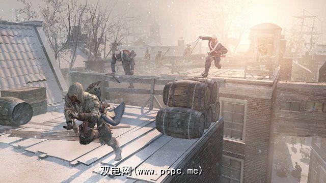 环境的变化更为戏剧化。 《刺客信条》是一个以其庞大的城市而闻名的系列。用小得多的城镇和茂密的森林代替他们是勇敢的。 III 甚至增加了天气;在三英尺高的积雪中覆盖游戏世界不仅改变了外观,而且改变了玩家与之互动的方式。您也可以带上大海。新的海战是与以前的比赛最根本的区别。康纳仍然是一名刺客。树木仍然以相同的自由运行机制攀爬。但是船只是全新的。