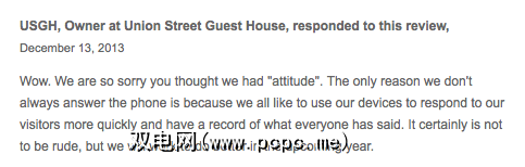 上面的回答就是一个很好的例子:引号中的“态度"一词令许多互联网用户感到讨厌,这反过来又促使他们中的更多人加入了Yelp上的愤怒暴民。