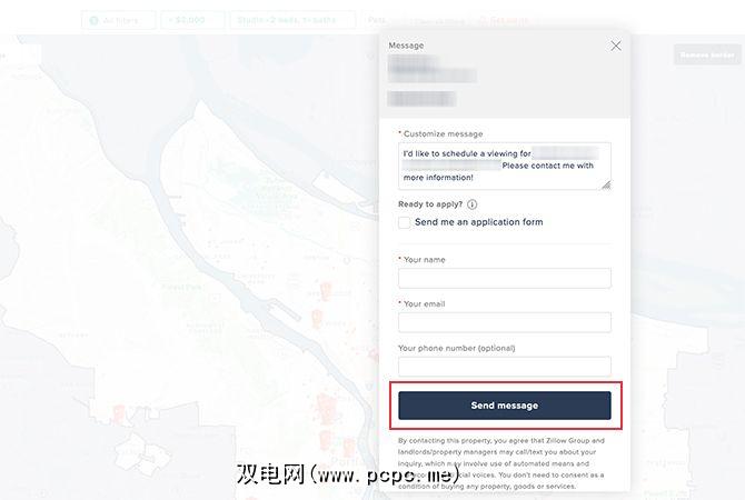 与房东联系需要您输入姓名和电子邮件,电话号码是可选的。填写完表格后,点击发送消息。