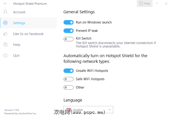 虽然在提供以下功能方面并不全面设置,尽管如此,Hotspot Shield仍然易于使用,并具有光滑的用户界面。