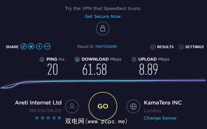 如您所见,在运行Hotspot Shield的同时,Ping速率已大大提高,下载和上传得分也没有太大差异。