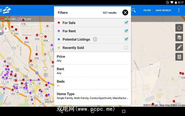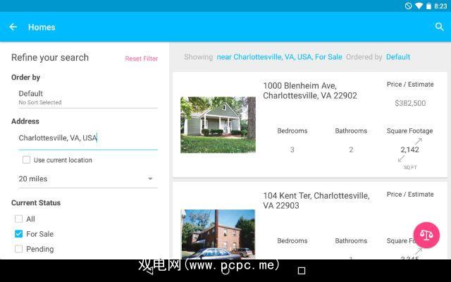 Zillow只是显示附近住宅列表的众多网站之一。 Android应用程序随附的其他选项包括Houses.com,Realtor.com和Trulia。
